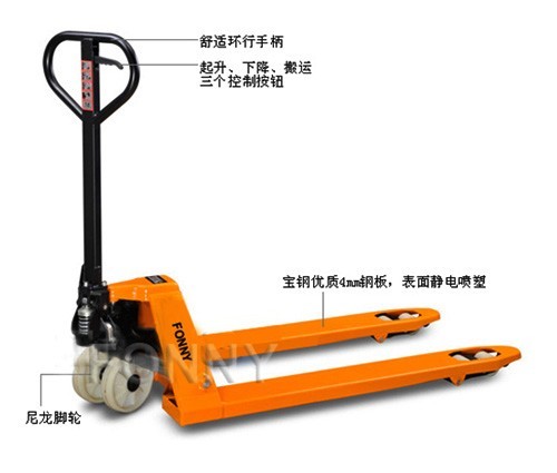 產(chǎn)品適用性:手動托盤車 是一切短距離搬運傳送作業(yè)的理想之選,該車擁有大載荷,既可搬運十分沉重貨物,也不畏懼非常規(guī)尺寸貨物,適用于搬運作業(yè)要求。