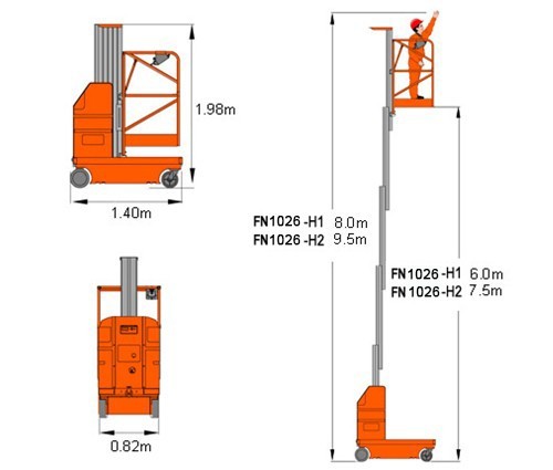 • 小的轉彎半徑(0°)及較小的尺寸(1.4m×0.82m)方便在狹小的空間作業;