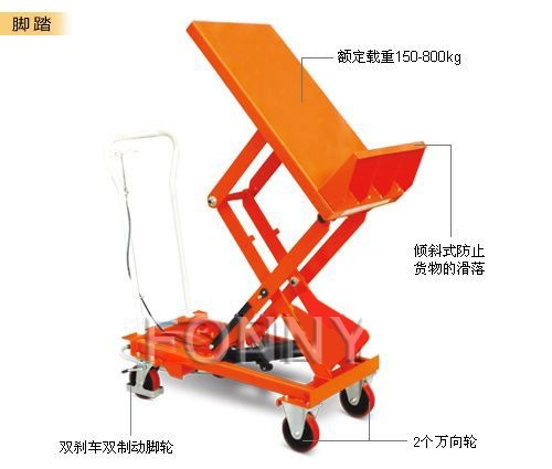 • 腳踏式作業(yè)臺(tái)面通過一個(gè)腳踏的液壓缸起升。臺(tái)面升起時(shí),自動(dòng)傾斜至45°的角度。內(nèi)裝的擋板將集裝箱固定在適當(dāng)?shù)奈恢?br />